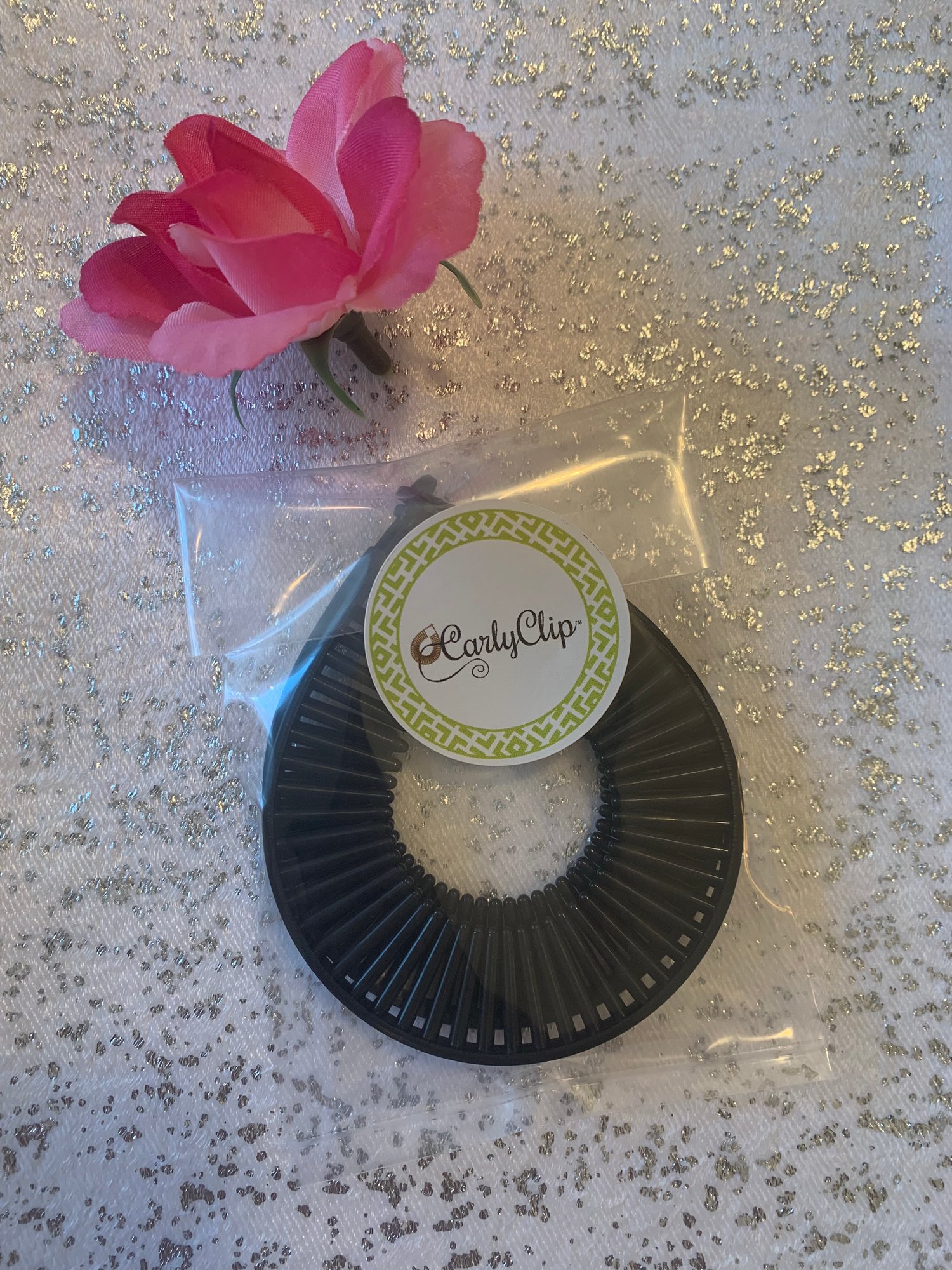 The CarlyClip is a Protective Styling Tool or ponytail holder designed to hold natural, textured and thick straight hair in place. It is made without hinges, metals or jagged edges to prevent hair breakage. This hair clip is durable, flexible and will not pull, tear, rip, break or slip from curly textured hair. It allows you to easily create hair styles such as sleek ponytails, stylish buns and messy up-dos.